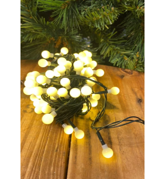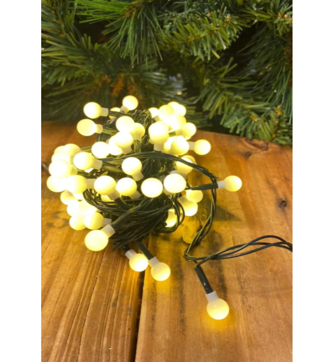 CORDÃO 100 LÂMPADAS CEREJINHA WARM FIO VERDE 8 FUNÇÕES 127V - 17020