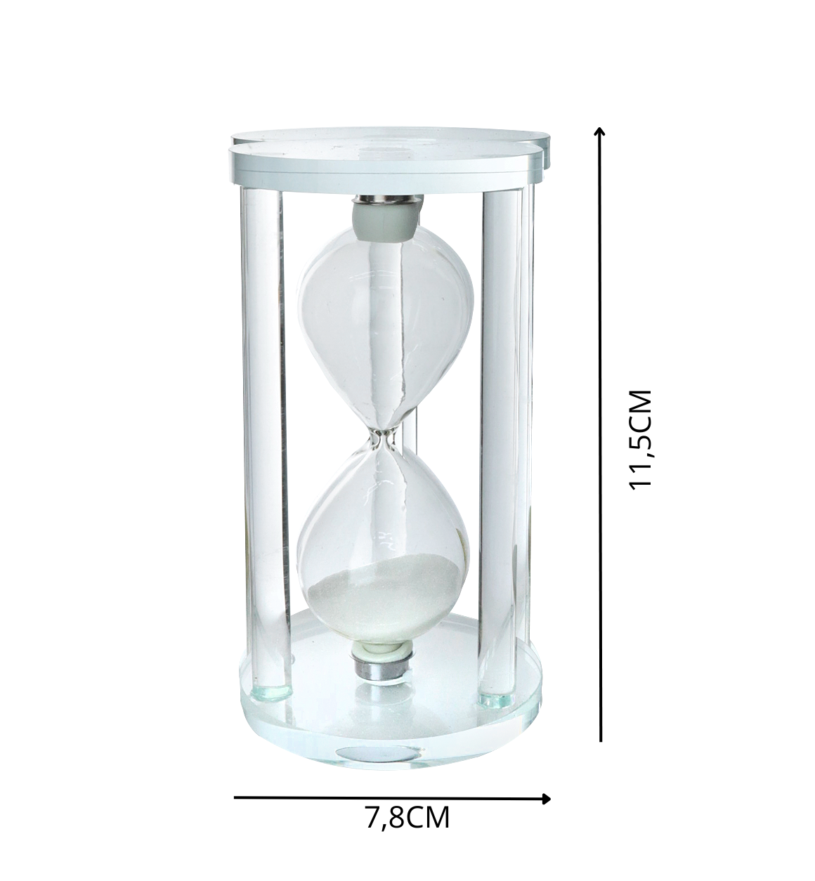 Totalmente produzida em vidro transparente, tanto o corpo quanto a base, a peça permite visualizar a passagem suave da areia, trazendo leveza e equilíbrio à decoração. Um toque de charme para escritórios, salas, quartos ou ambientes de estudo.