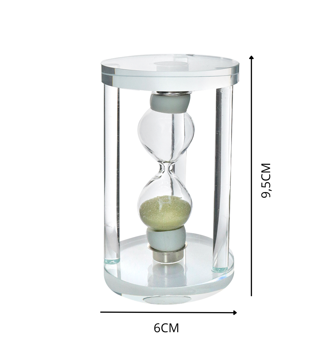 Totalmente produzida em vidro transparente, tanto o corpo quanto a base, a peça permite visualizar a passagem suave da areia, trazendo leveza e equilíbrio à decoração. Um toque de charme para escritórios, salas, quartos ou ambientes de estudo.