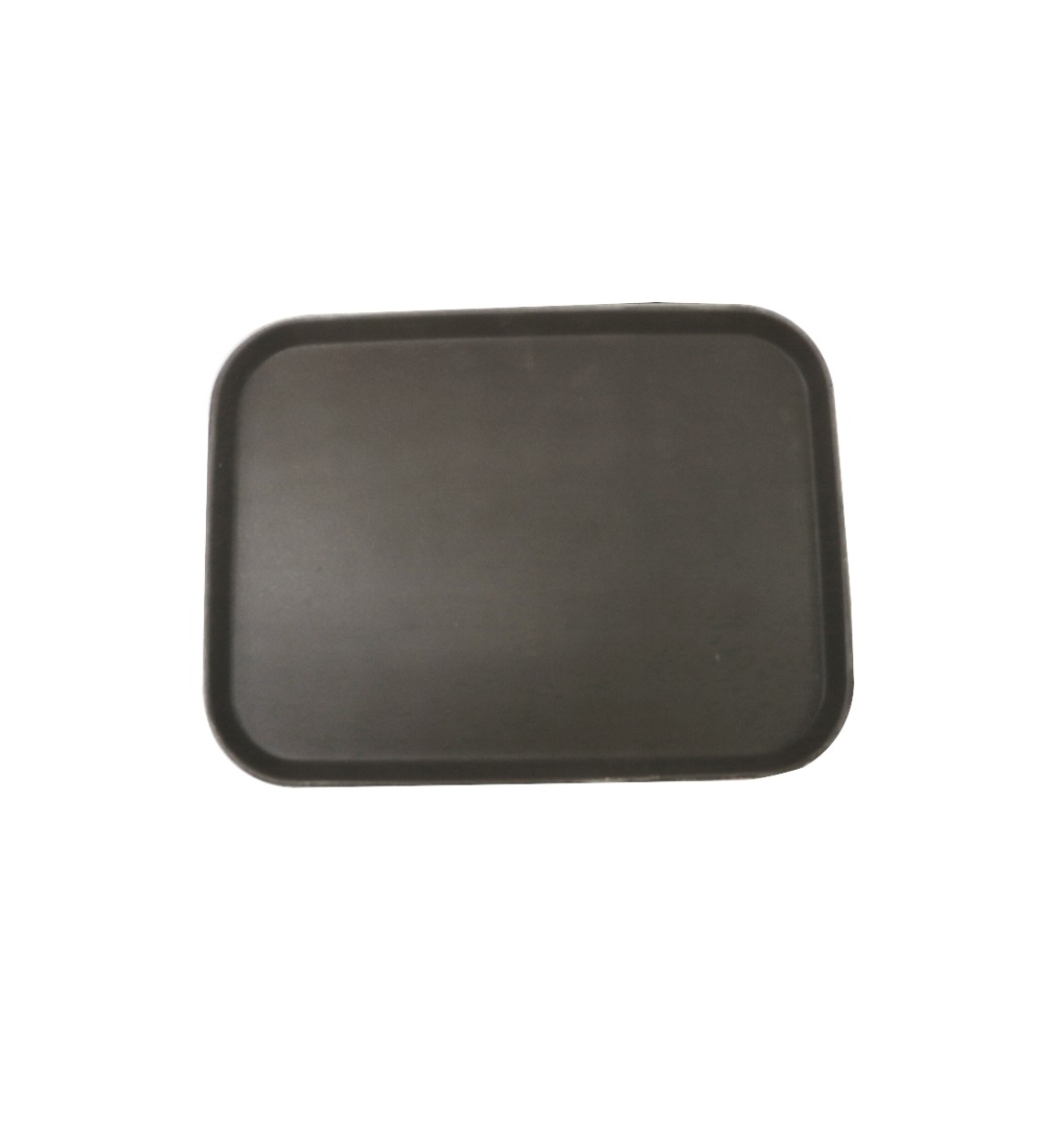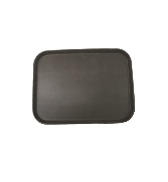 Bandeja emborrachada antiderrapante e com bordas arredondadas.