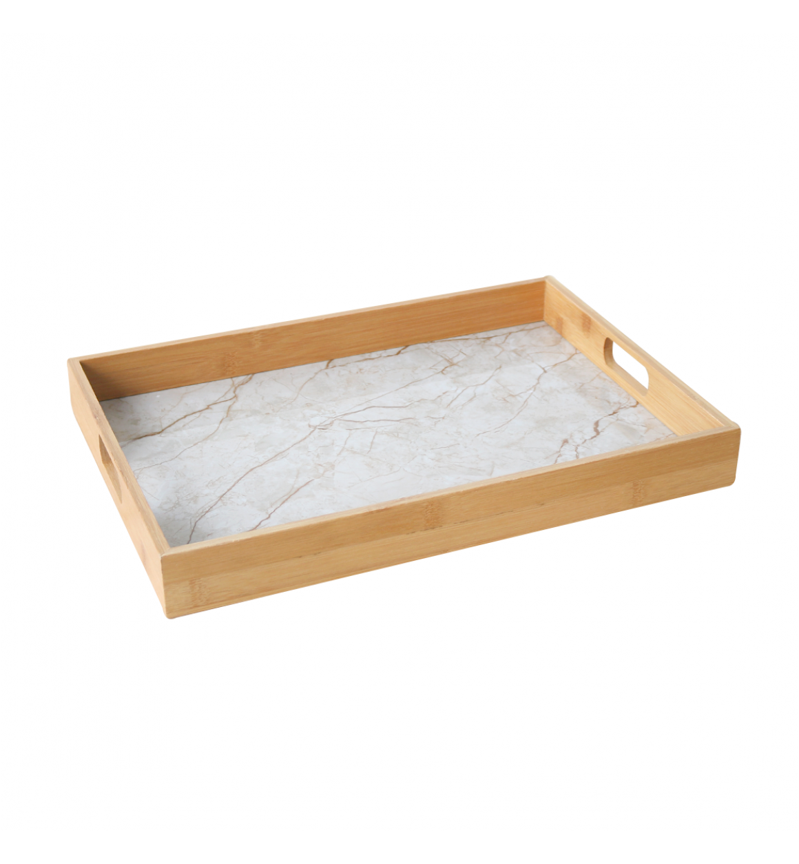 BANDEJA DE BAMBU COM FUNDO EM ESTAMPA MARMORIZADA 28x39,5x4,5CM - 96450-BG