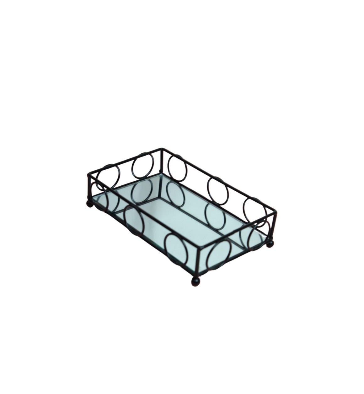 BANDEJA DE METAL ESPELHADA RETANGULAR DE VIDRO 20X12.5CM - KIT201-PT.