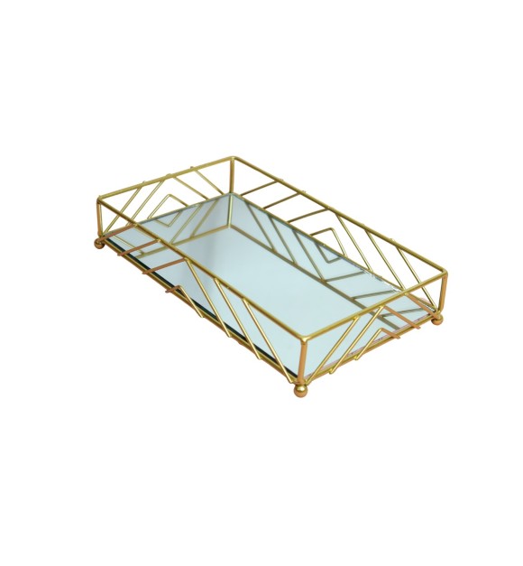BANDEJA DE METAL ESPELHADA RETANGULAR DE VIDRO 4X12X20CM - KIT203-DOU