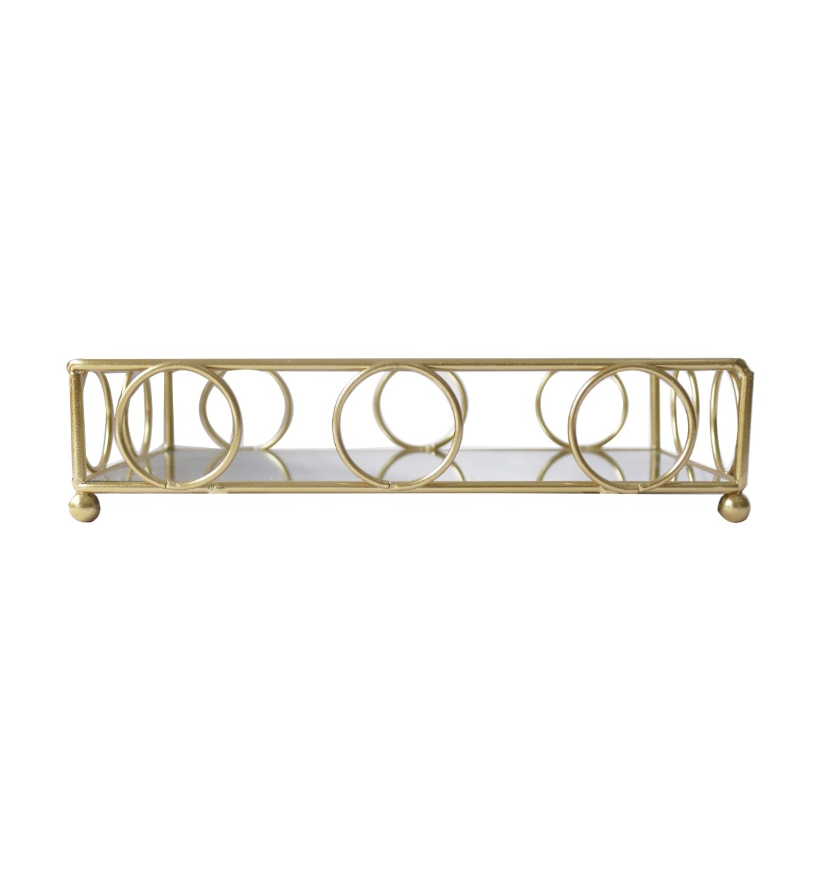 BANDEJA DE METAL ESPELHADA RETANGULAR DE VIDRO 4X15X25CM - KIT202-DOU.