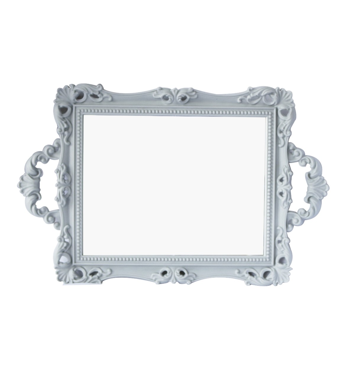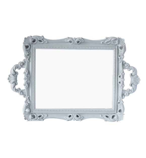Bandeja com detalhes na alça e em toda a peça. Espelho na base produto ideal para decoração de ambientes diversos.