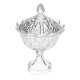 Bomboniere de vidro com pé e tampa ideal para colocar doces, balas ou o que preferir. Vidro em alto relevo o que a torna uma peça muito bonita e sem igual.