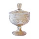 A Bomboniere com tampa e pé em vidro, adornada com detalhes em relevo, é um