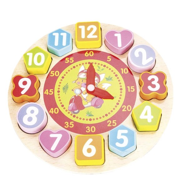 BRINQUEDO DIDÁTICO DE MADEIRA RELÓGIO EM ESTAMPA DE RAPOSA COM 13 PEÇAS - DMT5736-R