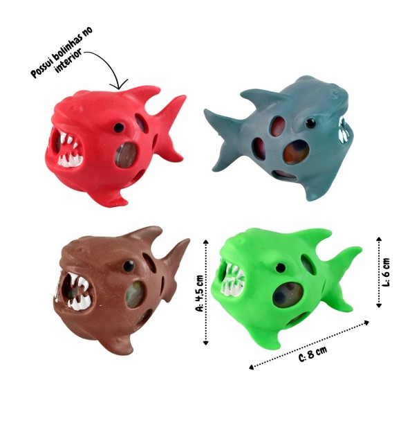BRINQUEDO TUBARÃO DE PLÁSTICO ANTI-ESTRESSE COM 4 UNIDADES - ZD004-UNI