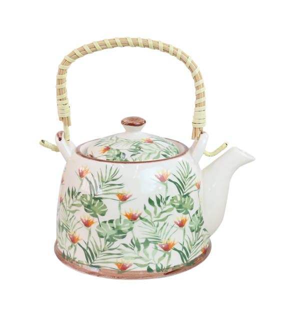 BULE CHALEIRA COM INFUSOR CERÂMICA FLORAL COM ALÇA 600ML - BUL0001-A