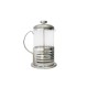 Cafeteira de prensa francesa em inox com copo de vidro, alça em inox com detalhes na parte que envolve o copo estampada. O modelo de prensa francesa é muito sofisticado e facilita na preparação de inúmera bebidas, não apenas o café. Ideal também para cappuccinos, cremes, leite cremoso, chocolates e demais bebidas de acordo com seu gosto e preferência.