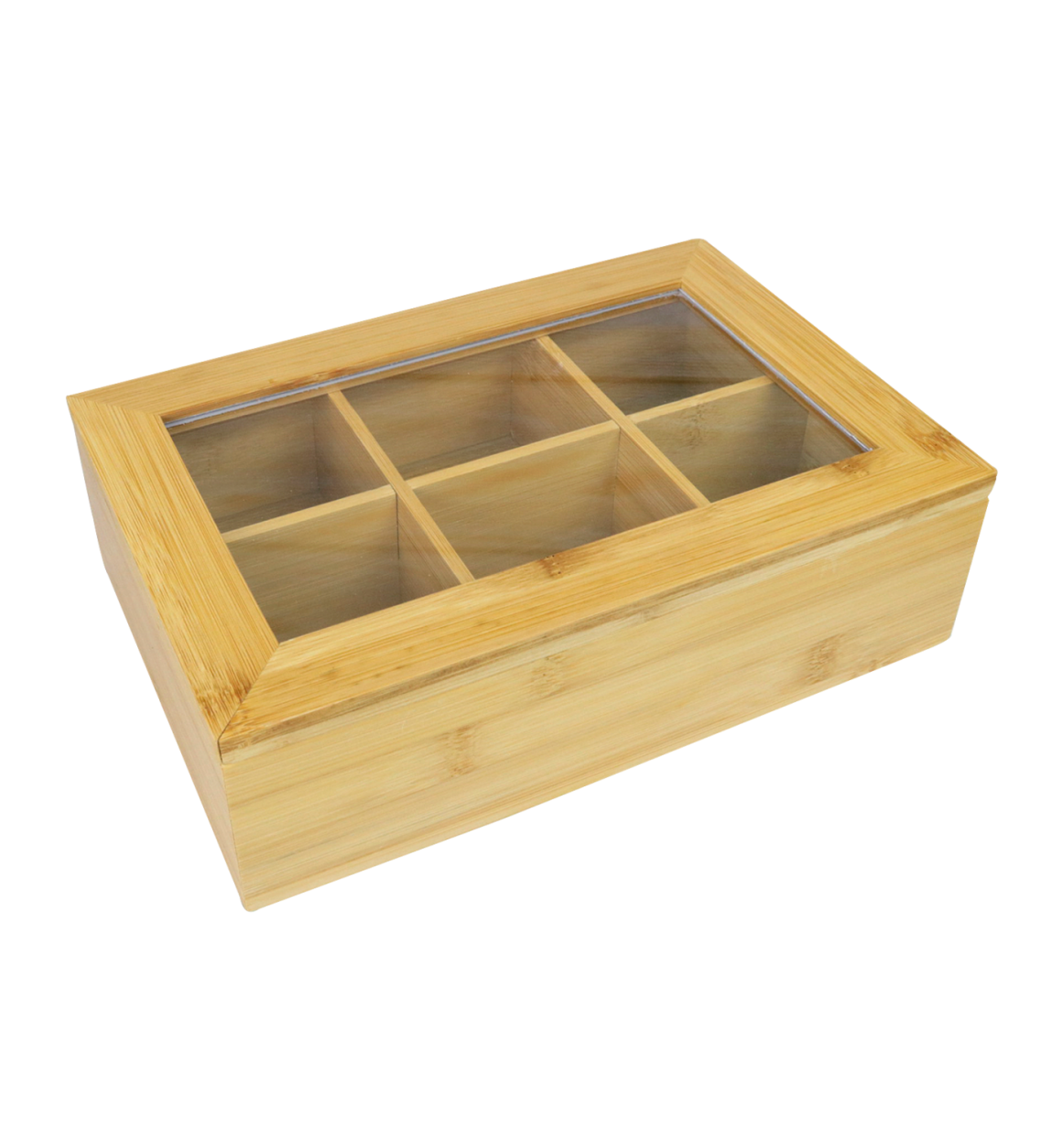 CAIXA DE BAMBU COM 6 DIVISÓRIAS E TAMPA DE ACRÍLICO 24CM - CX154