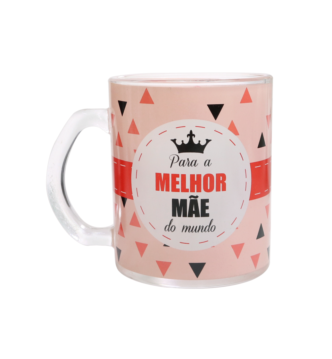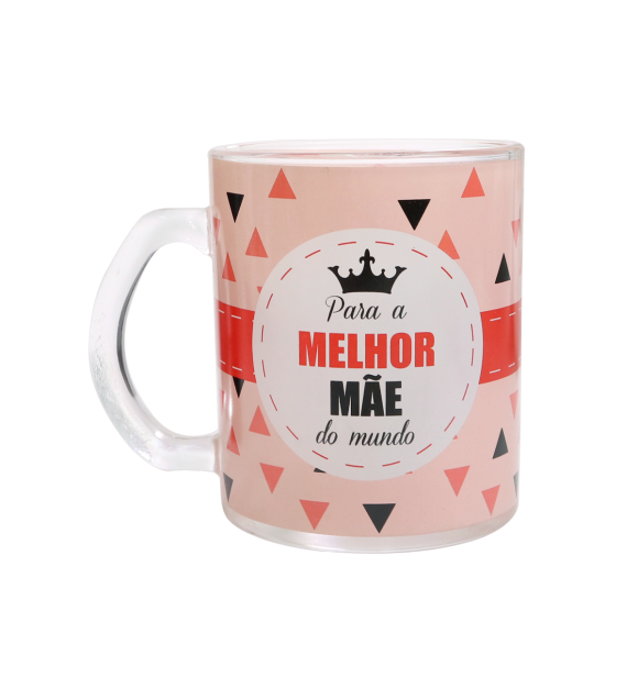Caneca de vidro transparente com a frase "Para a melhor mãe do mundo".