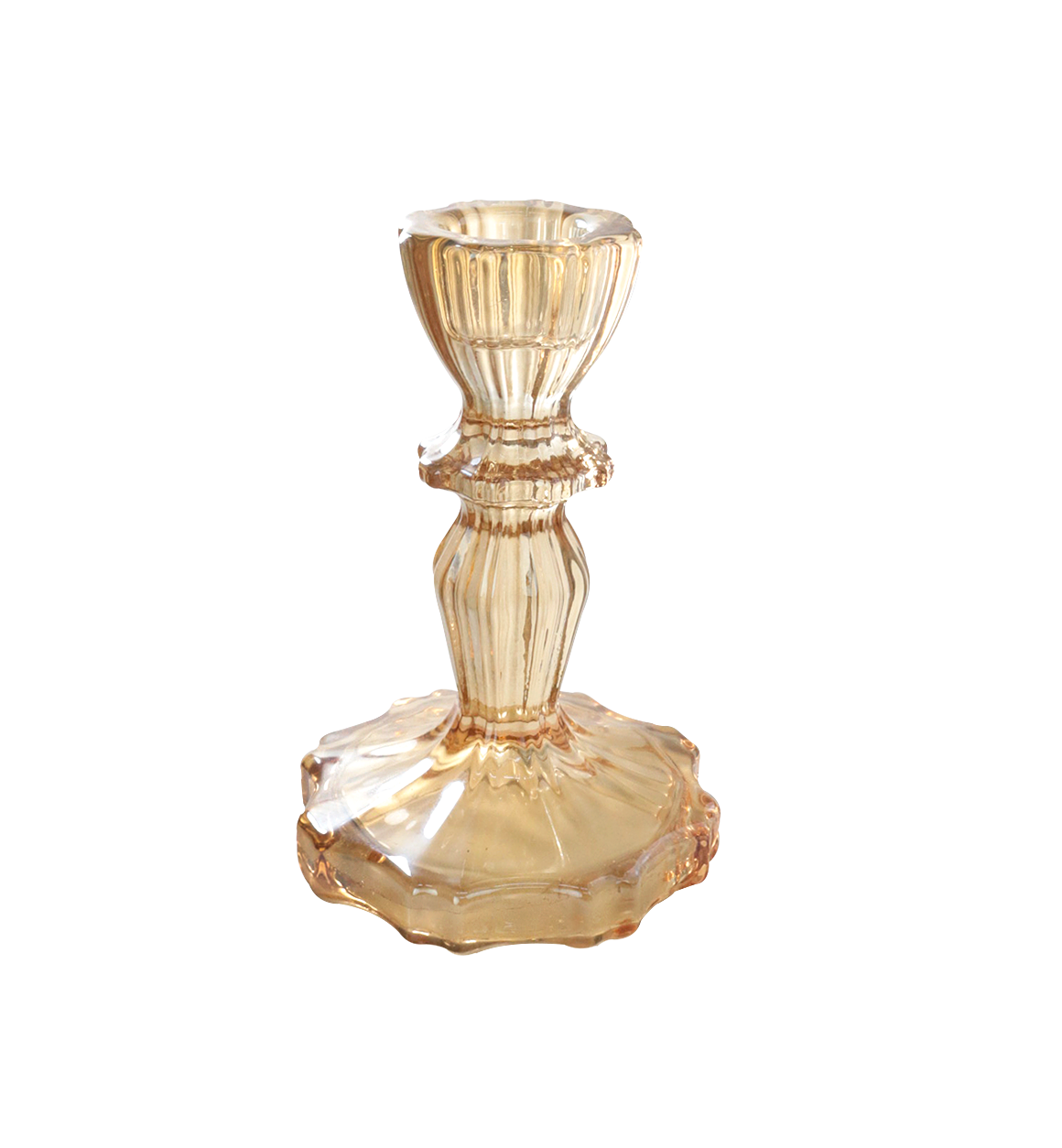 Encante seus ambientes com o charme e o brilho acolhedor do Castiçal de Vidro Âmbar.
