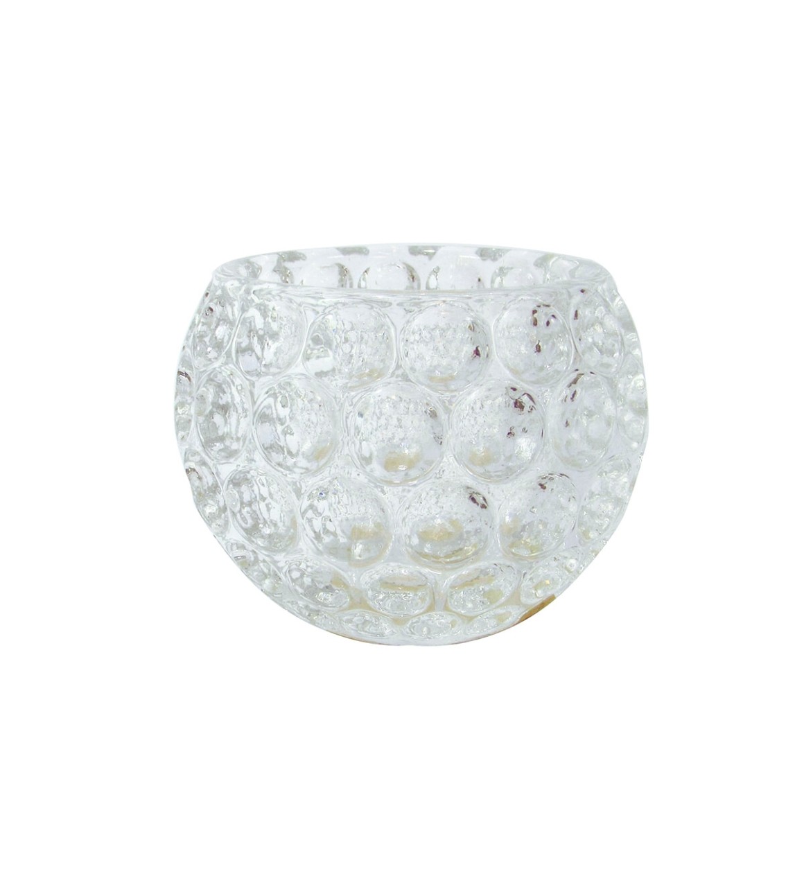 Porta Vela de Cristal Bolhas Elegancia e sofisticação, o porta vela de cristal bolha é uma peça requintada para centros de mesas, casamentos e aniversários. O vidro transparente reflete bem a luz da vela e o brilho quente cria um ambiente romântico e aconchegante.