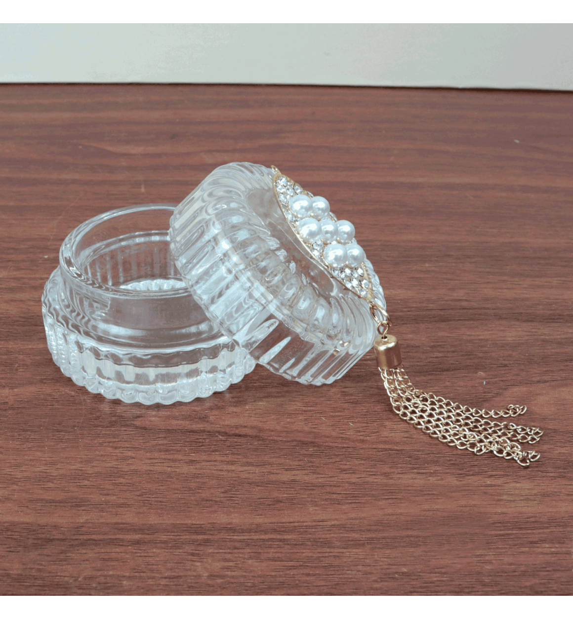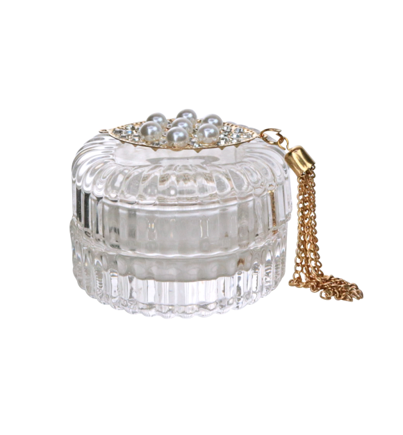 CASTIÇAL EM VIDRO COM TAMPA E PENDENTE 4,8CM - GA10045-C