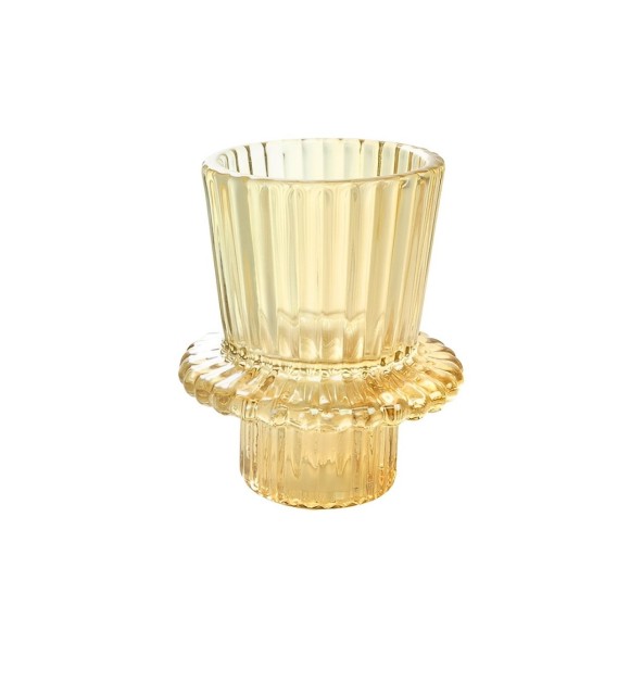 CASTIÇAL NA COR AMBAR DE VIDRO SODO CÁLCICO 6X7CM - CA16247