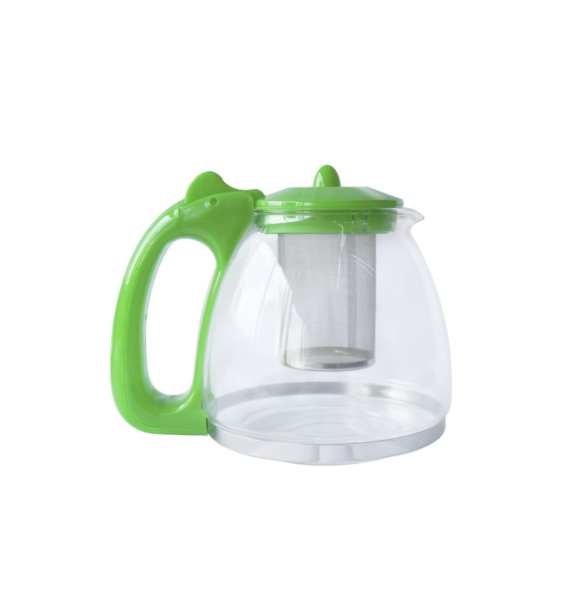 Chaleira de Vidro com infusor interno e tampa de plástico de fácil abertura.