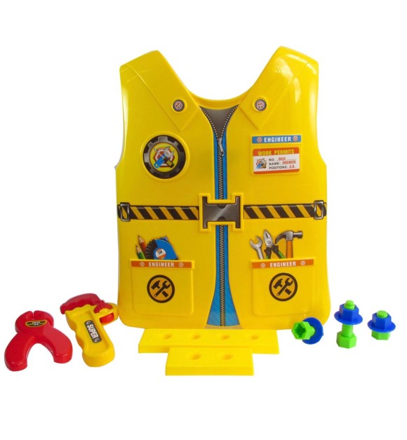 O colete de plástico da profissão de engenheiro é um acessório divertido e educativo que permite às crianças se imaginarem como engenheiros, enquanto aprendem sobre ferramentas e construção. Esse colete é feito de plástico resistente e possui detalhes realistas para adicionar autenticidade à brincadeira. O colete é projetado para se prender ao corpo por meio de acessórios ajustáveis, como alça elástica, garantindo um ajuste confortável e seguro para crianças de diferentes tamanhos. Dessa forma, as crianças podem usar o colete com facilidade e se sentirem como verdadeiros engenheiros.