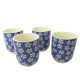 CONJUNTO DE 04 CANECAS ORIENTAL PARA CHÁ DE PORCELANA 150ML (CADA) ESTAMPA FLORAL - CN30A-AZ