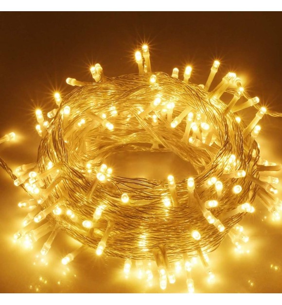 CORDÃO 500 LEDS WARM FIO TRANSPARENTE 8 FUNÇÕES USO EXTERNO IP44 - 32008