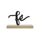 ENFEITE DECORATIVO ARAMADO COM BASE DE MADEIRA PALAVRA FÉ 19,7X3,8X12,8CM - 2001-A.