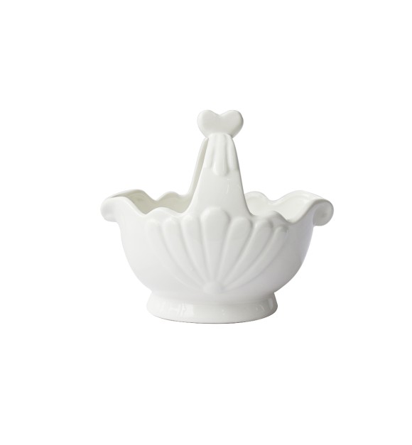 Ideal para mesa posta e para decorações de ambientes diversos, em forma de cesto com alça para manuseio.