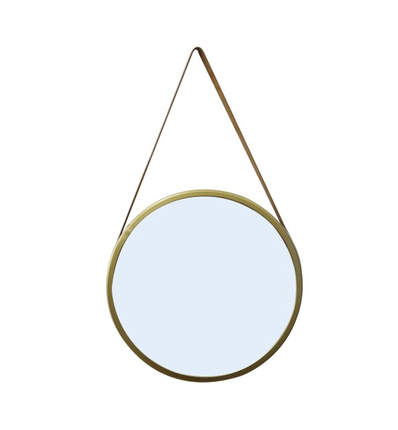 ESPELHO DE PAREDE REDONDO 33CM COM ALÇA EM COURO SINTÉTICO - HJ68429-DOU
