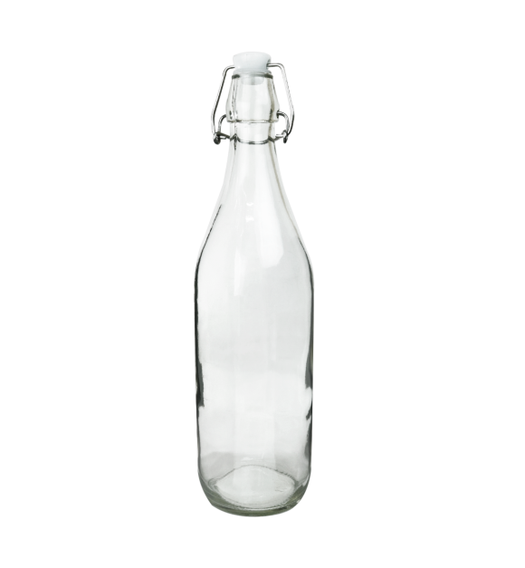 GARRAFA DE VIDRO TRANSPARENTE COM TAMPA HERMÉTICA 1 LITRO - CA12551