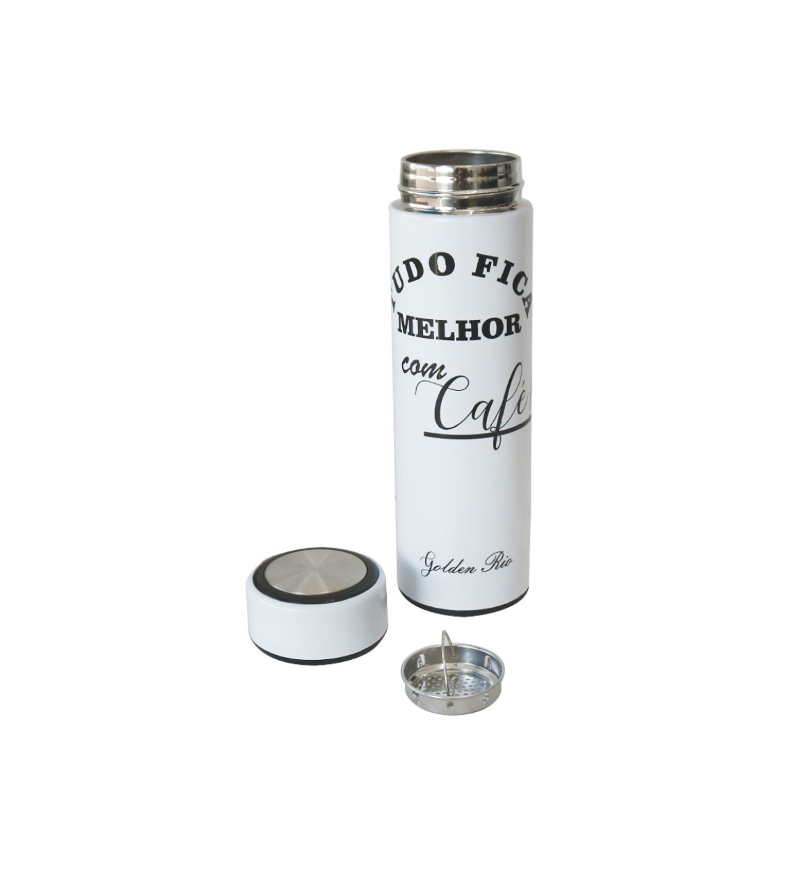 A garrafa isotérmica de inox com infusor possui uma tampa com fechamento por rosqueamento que impede vazamentos e derramamentos de líquidos. Além disso, incluem um infusor na parte interna que possibilita fazer chá e outras bebidas.