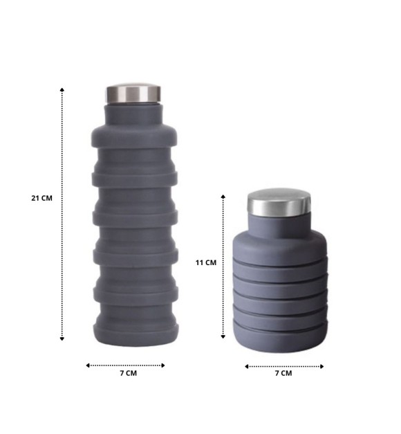 GARRAFA RETRÁTIL DE SILICONE COM TAMPA INOX 500ML - 2231-CZ