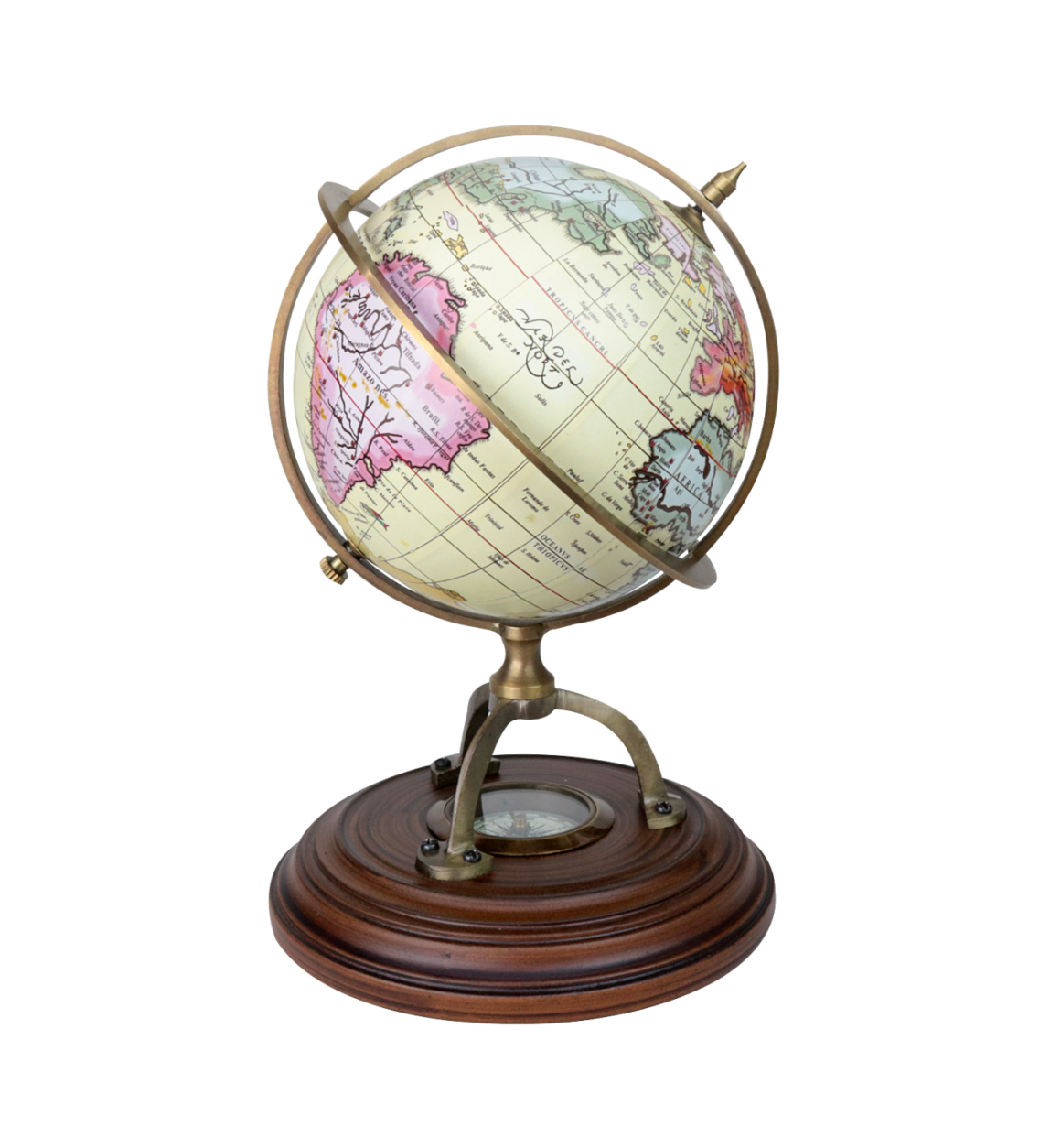 GLOBO DECORATIVO COM BÚSSULA DE METAL E MADEIRA DOURADO - 60628