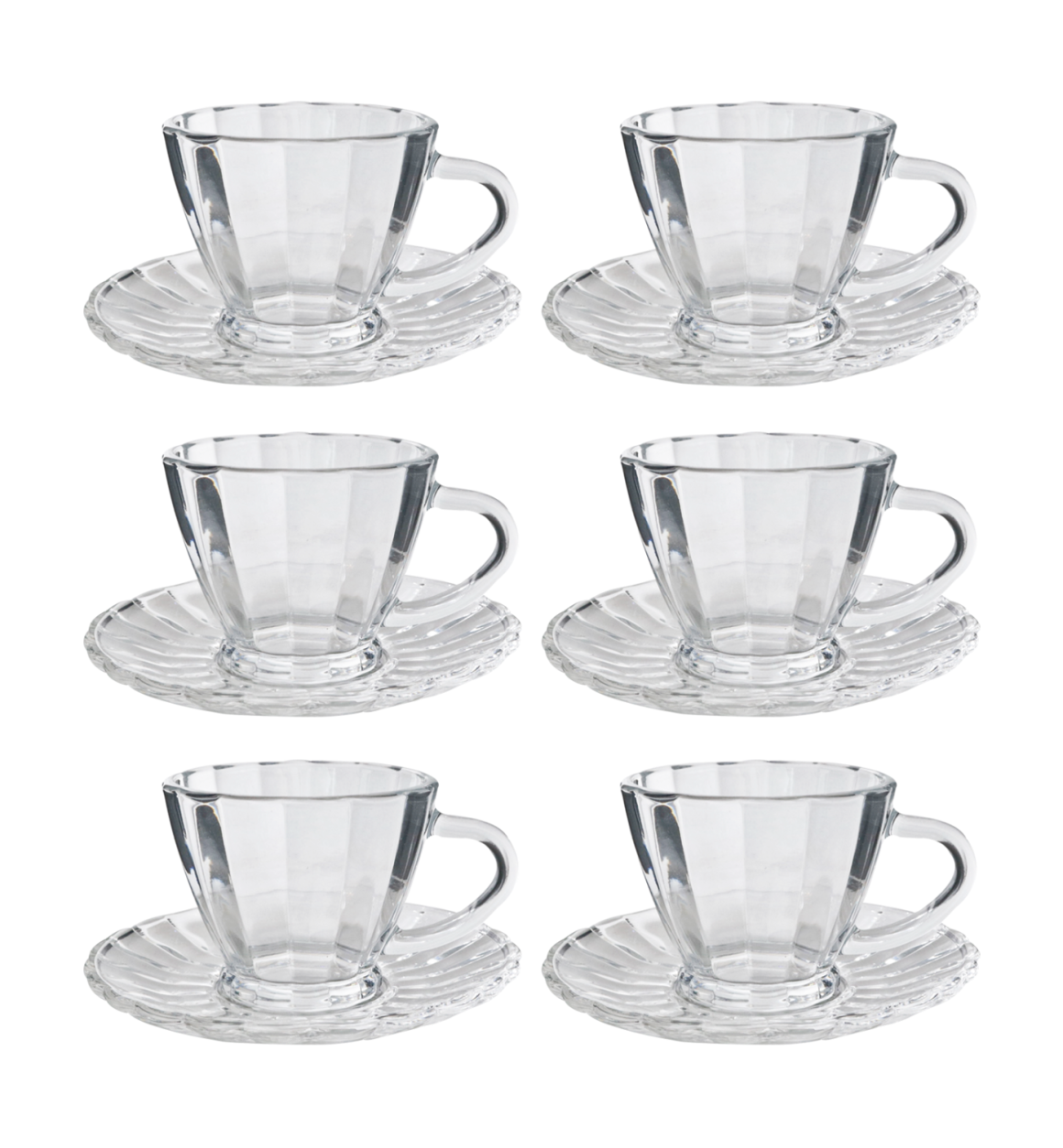 Beleza e praticidade para o seu momento do café! Este elegante conjunto conta com 6 xícaras de vidro transparente e 6 pires combinando, ideal para servir café, ou espresso com charme e sofisticação. Com design clássico e compacto, as peças valorizam a apresentação da bebida e combinam com qualquer estilo de louça ou decoração.
