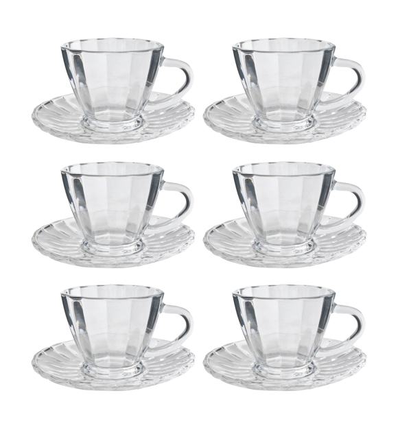 JOGO 6 XÍCARAS E 6 PIRES DE VIDRO PARA CAFÉ 76ML - DT24264