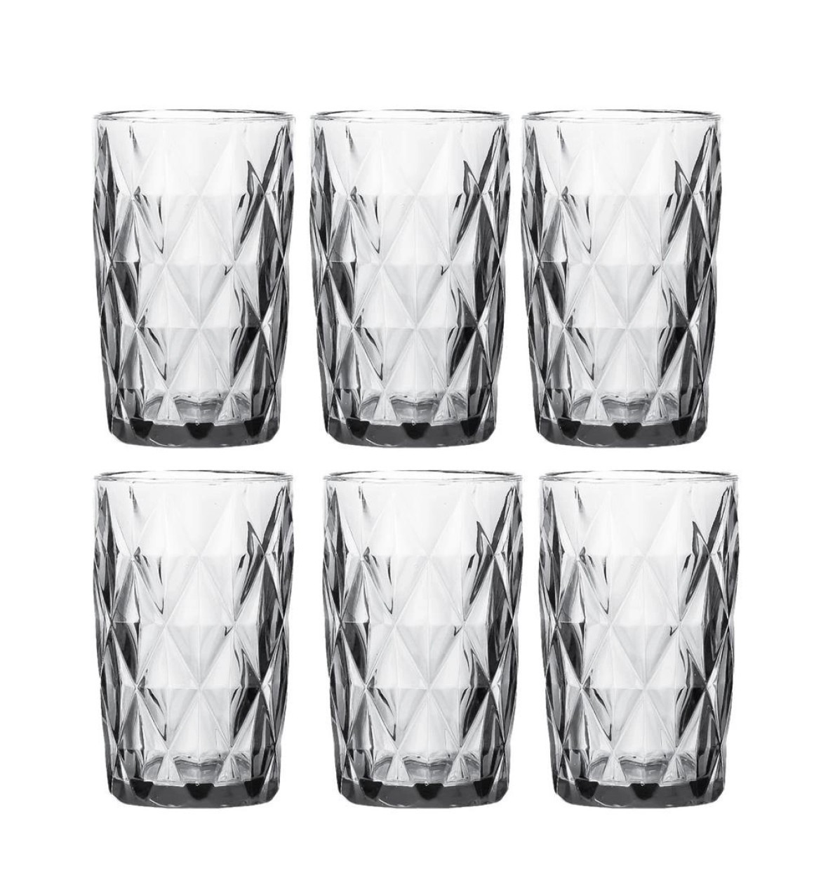 JOGO COM 6 COPOS EM VIDRO DESIGN EM ALTO RELEVO 350ML - BF3772