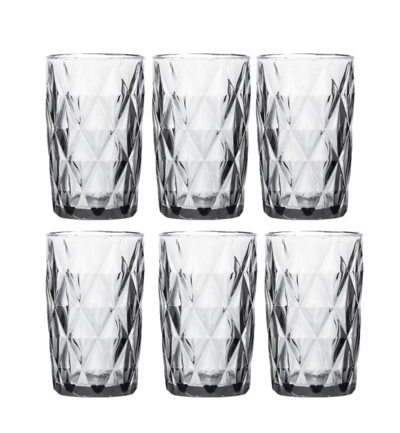 JOGO COM 6 COPOS EM VIDRO DESIGN EM ALTO RELEVO 350ML - BF3772.