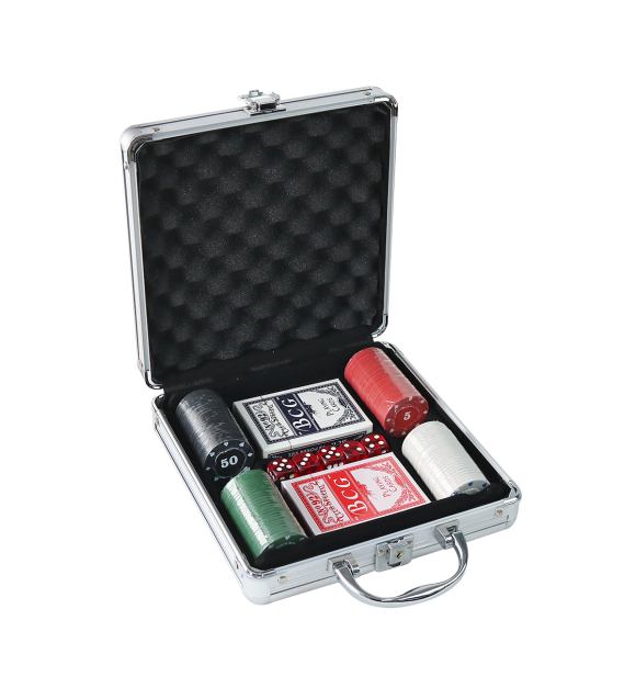 A maleta de Poker com chave é um conjunto completo para os amantes do jogo de cartas. Feita de material durável, como alumínio resistente, a maleta possui um acabamento elegante e vem com uma chave para travá-la, garantindo a segurança e a privacidade dos componentes internos. O conjunto também contém cinco dados que são usados para jogar diferentes variações de poker ou outros jogos. Eles são feitos de plástico e têm um tamanho padrão. A maleta contém 100 fichas de poker (25 de cada) e têm diferentes denominações, permitindo que os jogadores façam apostas em valores variados. Além disso o conjunto inclui dois baralhos completos de 52 cartas cada um. Os baralhos são feitos de papel de alta qualidade, com um acabamento suave e deslizante, permitindo uma fácil distribuição e manuseio das cartas. As faces das cartas têm designs clássicos e detalhados, facilitando a identificação de cada carta.