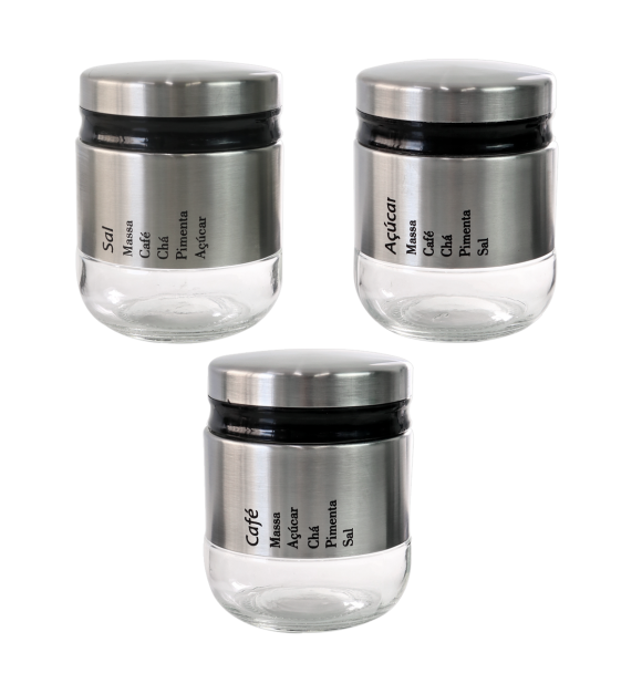JOGO DE PORTA TEMPERO COM 3 PEÇAS DE INOX 300ML - 3826.
