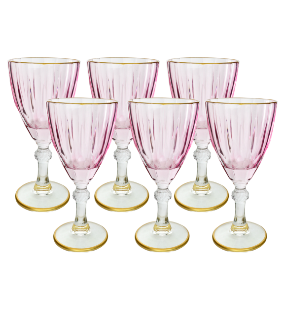 JOGO DE TAÇA DE VIDRO COM BORDA DOURADA 6PÇS 210ML - CA16187-RS