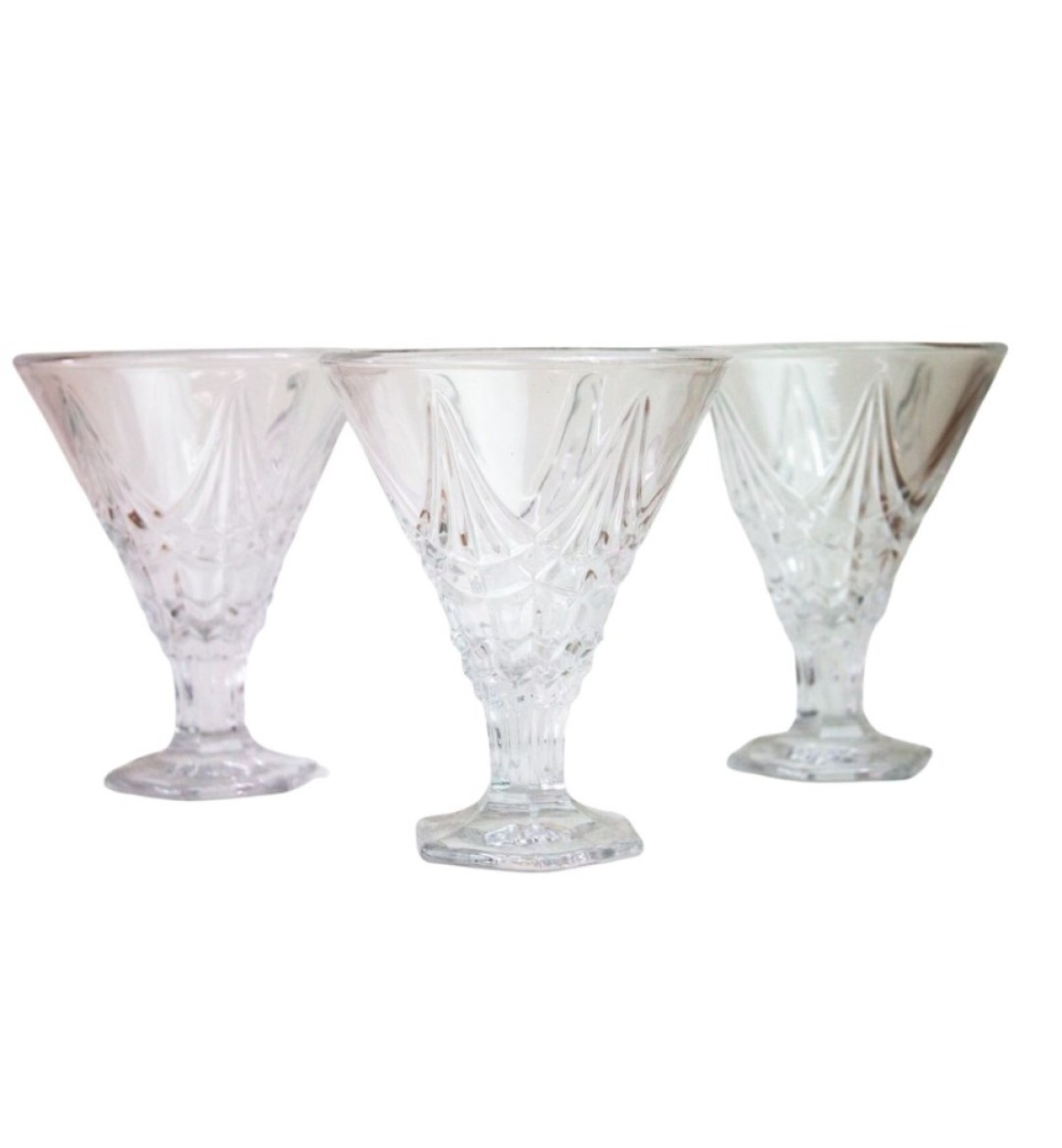 Apresentamos um requintado jogo de taças para sobremesas em vidro, composto