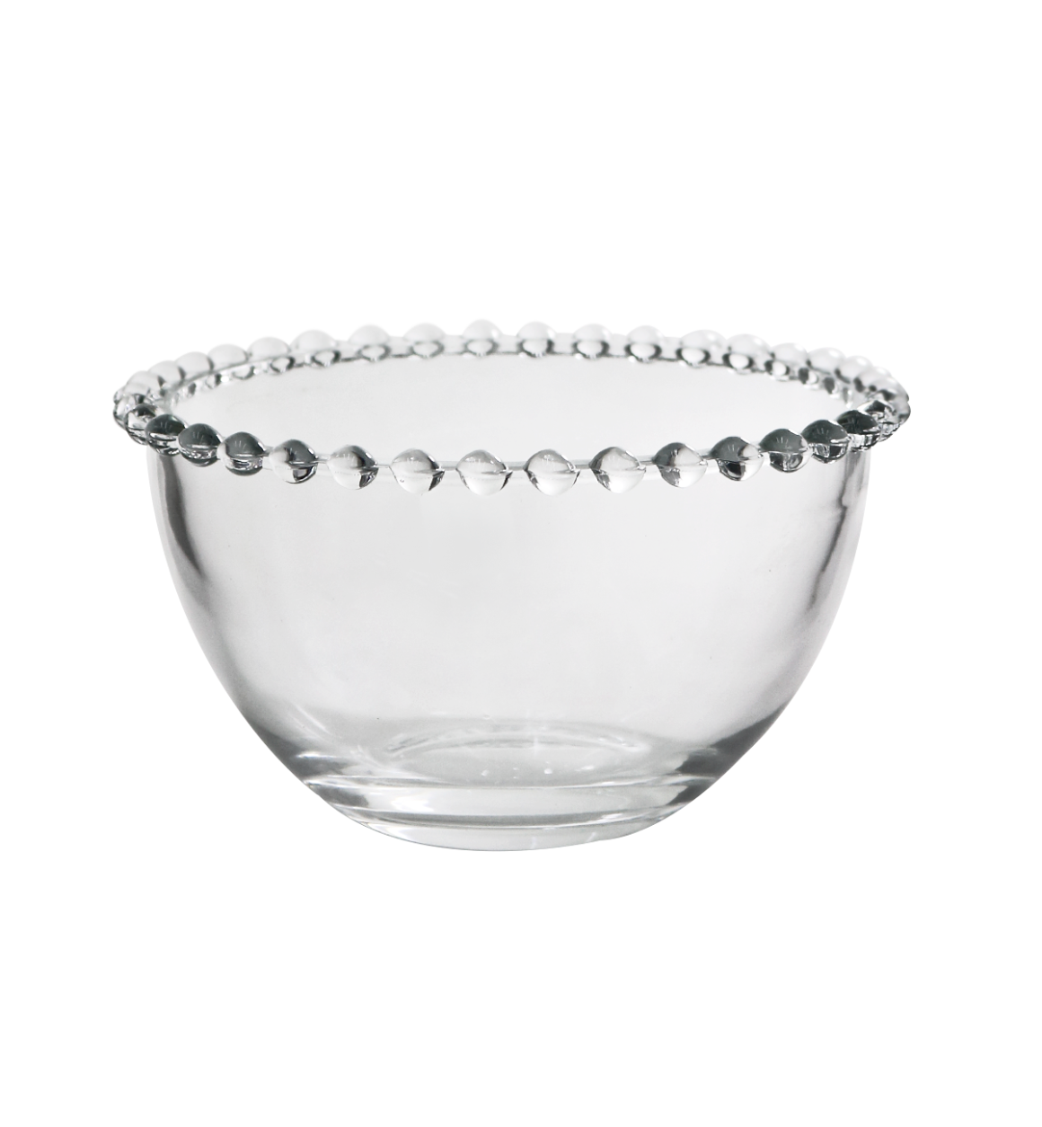 O Jogo de tigela de vidro com detalhes na borda possui 6 peças com 13,5cm.