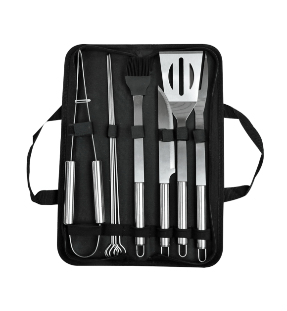 O Conjunto de utensílios para churrasco com 10 peças é uma escolha popular para entusiastas de churrascos e grelhados, pois oferece uma variedade de ferramentas essenciais para preparar e servir deliciosas refeições ao ar livre. Esse Kit é ideal para facilitar esse momento de descontração e lazer, tendo um lindo design e fino acabamento. São 9 peças todas em aço inox, com cabo e alça para serem pendurados, tudo acondicionado em um estojo de poliéster com zíper facilitando na organização e no transporte.