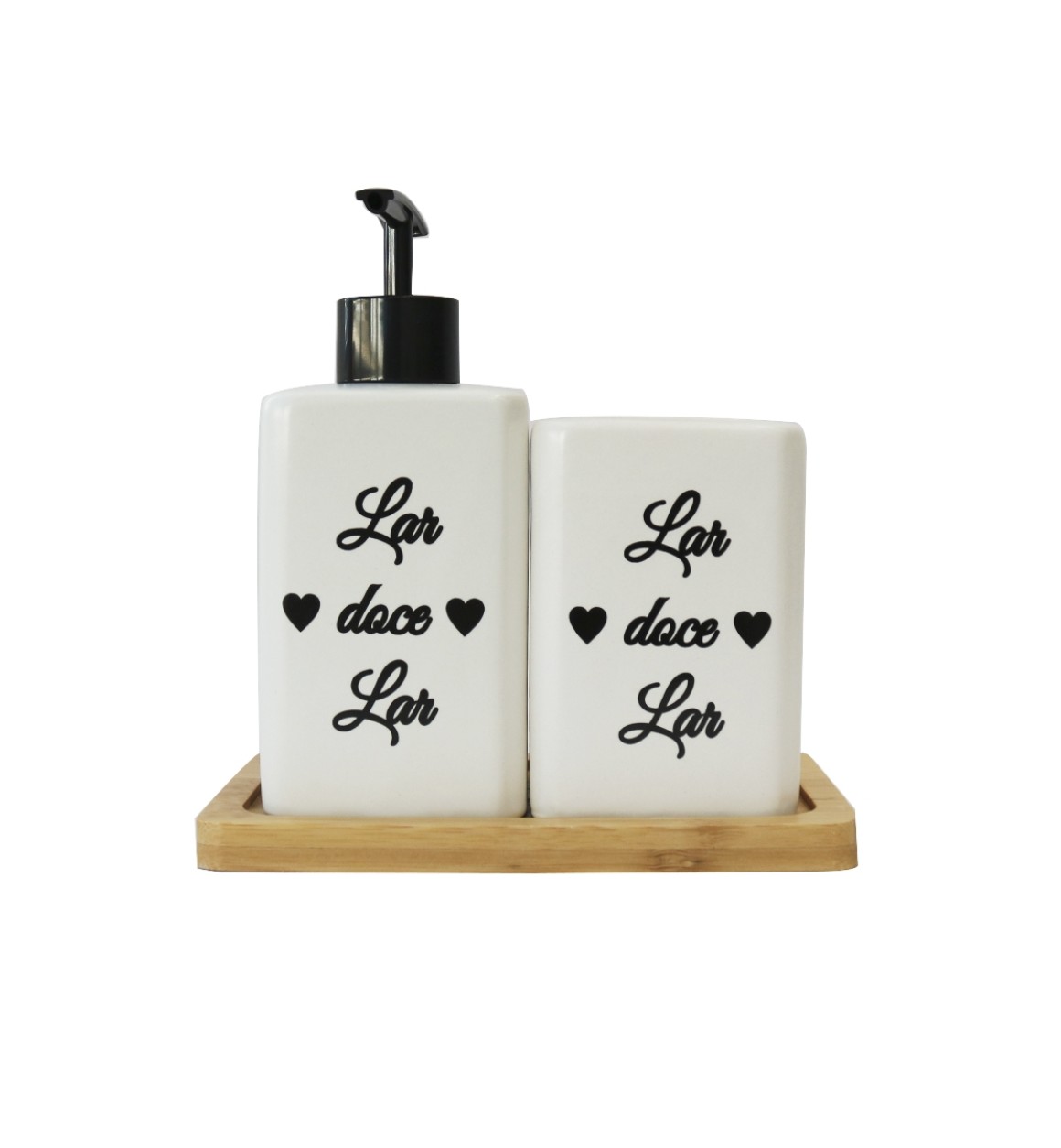 KIT DE BANHEIRO EM CERÂMICA COM 03 PEÇAS COM FRASE LAR DOCE LAR - 98630