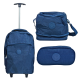 KIT MOCHILA ESCOLAR DE RODINHAS CASUAL CRINKLE EM NYLON - YS41052-AZMA