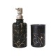 Jogo de banheiro em vidro com estampa marmorizada e bico dosador com acionamento tipo pump que permite o controle e evita o desperdício de líquido. Produto de excelente qualidade com duas peças sendo um porta sabonete líquido e um copo porta escova de dentes e creme dental.