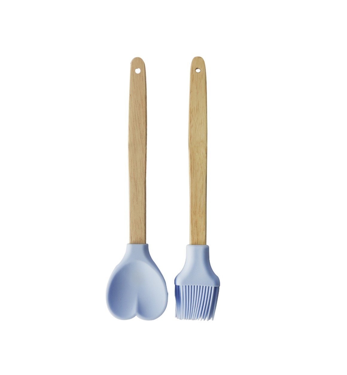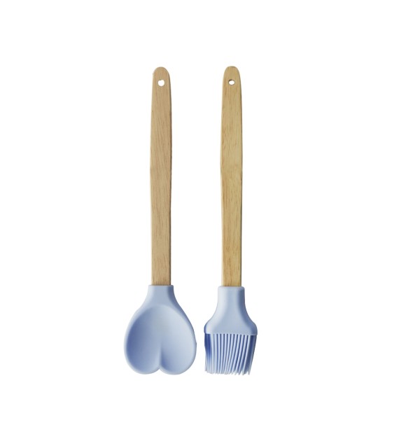KIT PINCEL E COLHER CORAÇÃO DE SILICONE COM CABO DE BAMBU C/ 2 PÇS - CA09598-AZCL