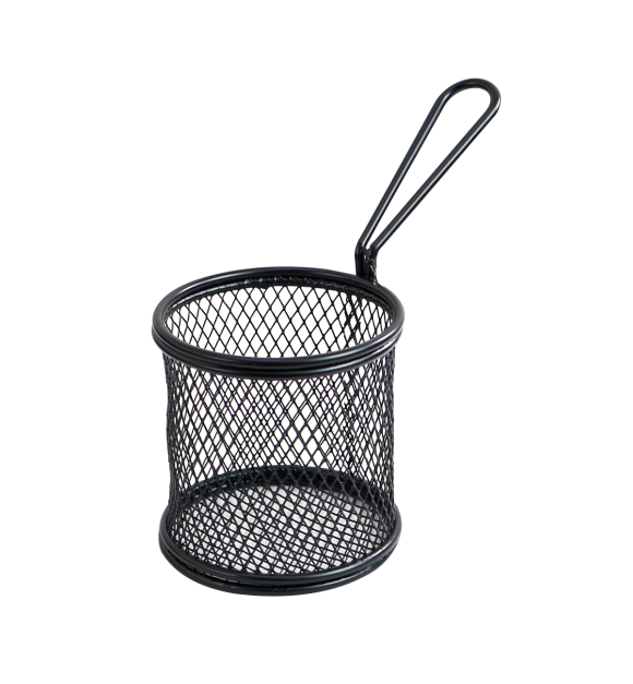 MINI CESTA DE SERVIR PORÇÕES EM FERRO REDONDA 8X8X8CM PRETO - CA09707