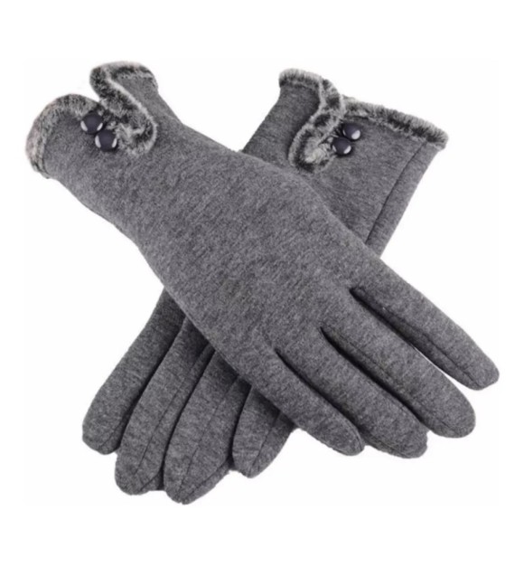 Par de luvas com detalhes no pulso, borda de pelúcia e 3 botões. O dedo polegar e o indicador contém um tecido que permite usar o celular sem tirar a luva. O par de luvas vem com o forro de pelúcia que deixa tudo mais confortável, macio e quentinho.