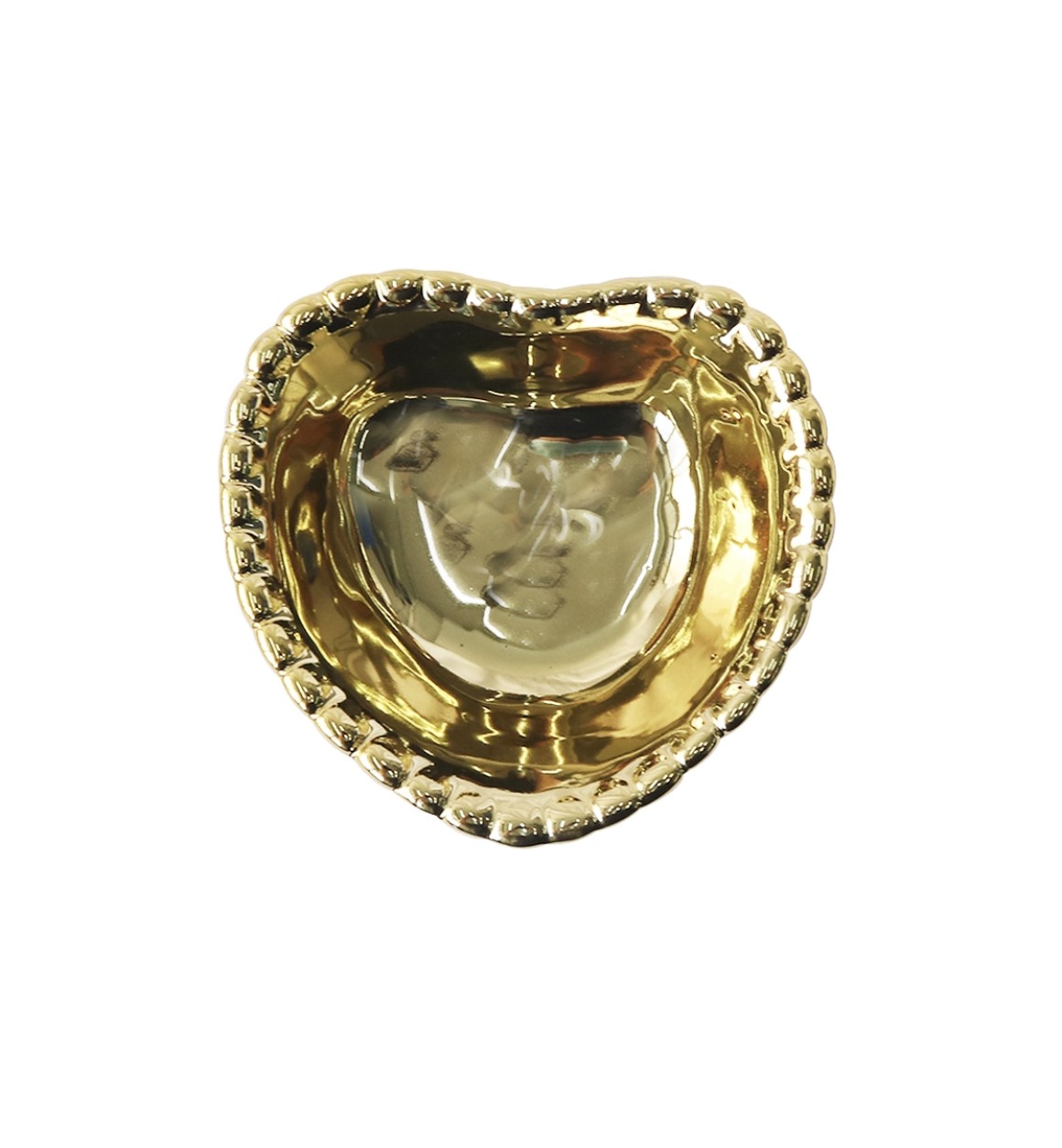 Porta Joias e petisqueira em formato de coração com detalhes na borda. Ideal para armazenamento de acessórios e pequenas peças como anéis,colares,brincos e pulseiras. Além de servir como uma linda petisqueira para uma composição de mesa posta sofisticada e elegante, tratando-se de uma peça pequena é possível servir apenas pequenas porções de petiscos.