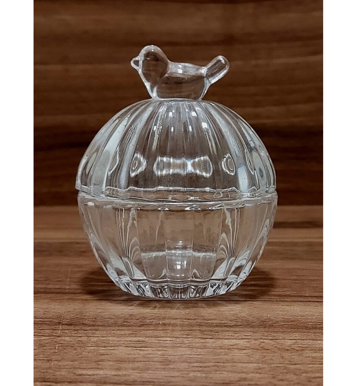 PORTA JÓIA PÁSSARO DE VIDRO COM TAMPA 8X9CM - DEE05002